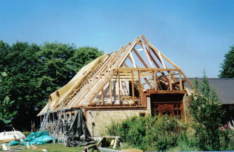 ist diese kleine Kate. Ein denkmalgeschützte Haus mit schiefen Wänden und rotten Hölzern. Unter Aufsicht der Denkmalschutzbehörde wurde nicht mehr zu rettendes Material ausgetauscht. Die Wände mussten mit historischen Baustoffen, und soweit es möglich war, mit den alten Steinen wieder aufgemauert werden. Bei der Sanierung kamen auch traditionelle Werkzeuge wie Dexel und Breitbeil zum Einsatz.